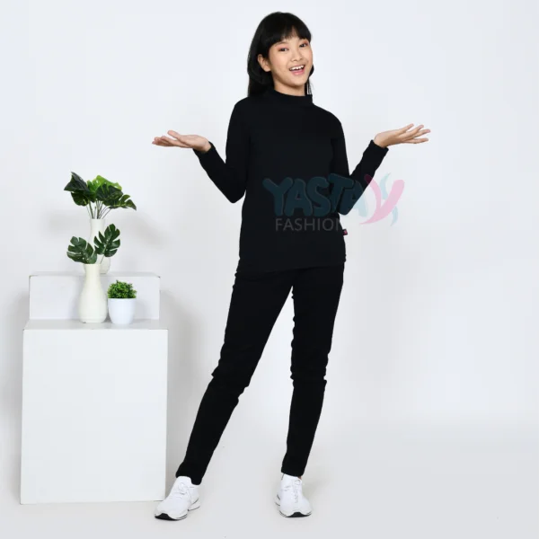 Warna hitam adalah pilihan yang selalu trendi dan serbaguna. Warna ini tidak hanya memberikan tampilan yang elegan, tetapi juga fleksibel untuk dipadukan dengan berbagai jenis busana lain. Dengan warna hitam yang simpel, anak Anda dapat memadukannya dengan celana atau rok berwarna cerah untuk tampilan kasual yang chic, atau dengan celana hitam atau gelap untuk tampilan yang lebih formal dan rapi. Warna hitam pada manset ini juga tidak mudah pudar, sehingga pakaian tetap terlihat baru meskipun telah melalui banyak siklus pencucian.